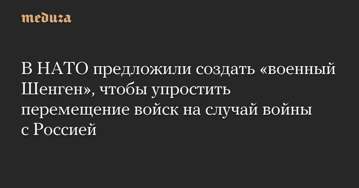 Глава Объединенного командования по тыловому обеспечению и логистике НАТО Александер Зольфранк заявил, что альянс должен создать «военный Шенген», который позволит войскам НАТО свободно перемещаться внутри территории блока, сообщает Reuters.
