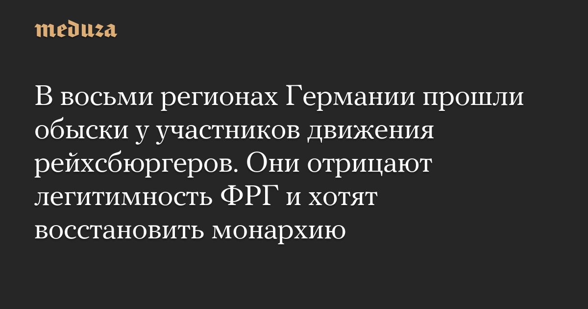 В восьми регионах Германии прошли обыски у участников движения рейхсбюргеров. Они отрицают легитимность ФРГ и хотят восстановить монархию