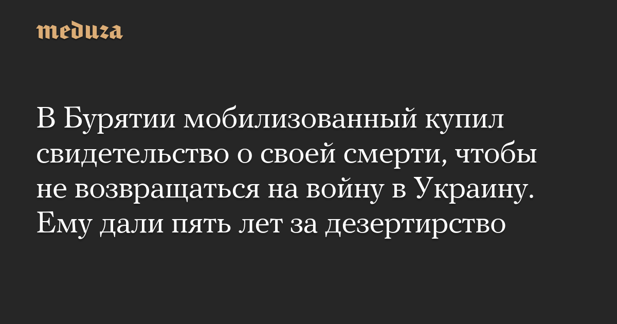 В Бурятии мобилизованный купил свидетельство о своей смерти, чтобы не возвращаться на войну в Украину. Ему дали пять лет за дезертирство
