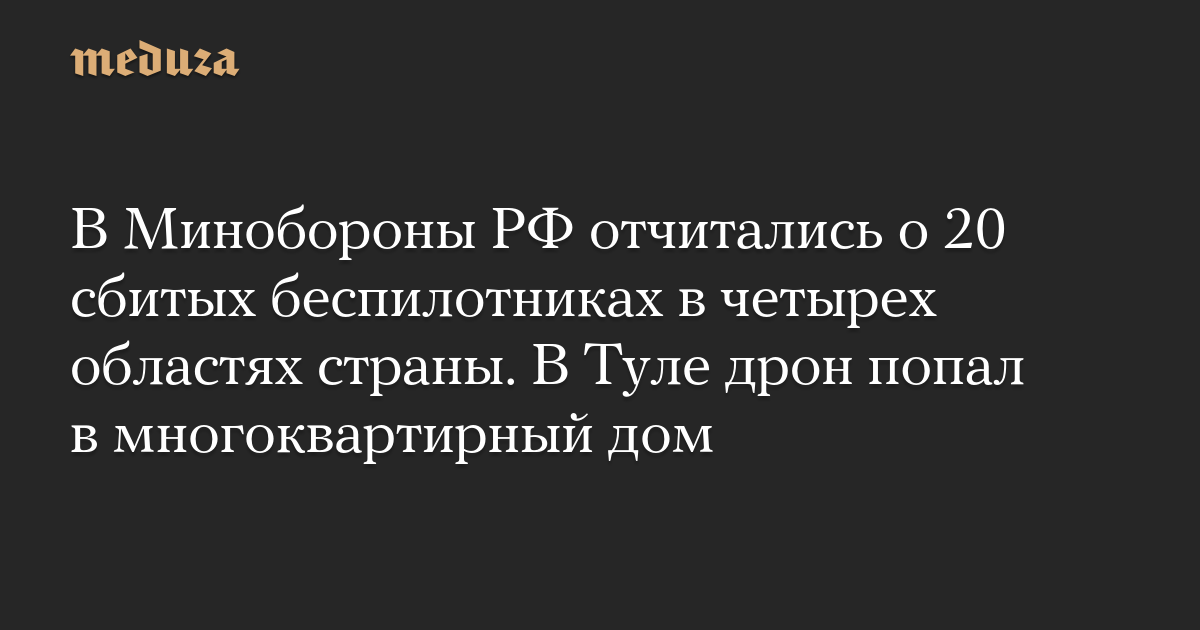 В Минобороны РФ отчитались о 20 сбитых беспилотниках в четырех областях страны. В Туле дрон попал в многоквартирный дом