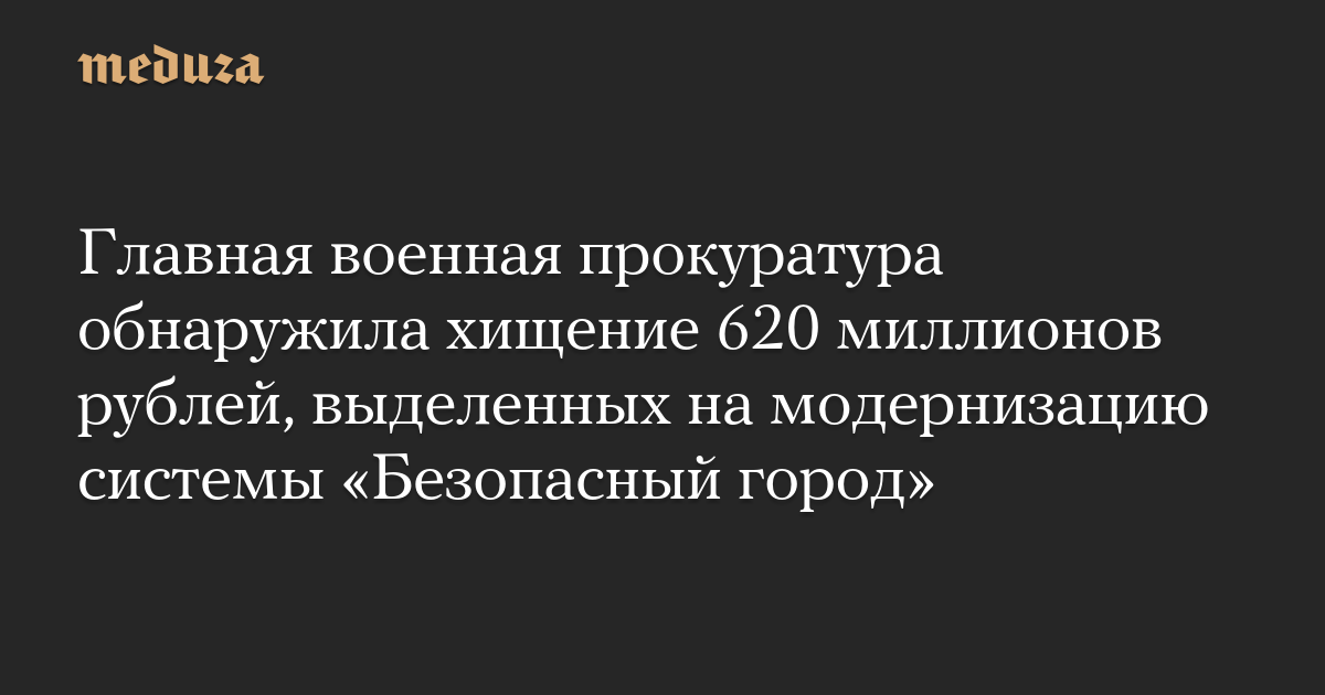 Главная военная прокуратура обнаружила хищение 620 миллионов рублей, выделенных на модернизацию системы «Безопасный город»
