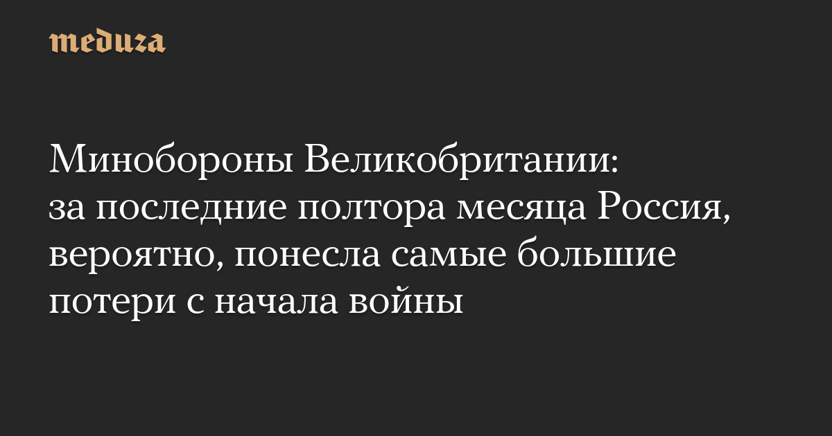 Минобороны Великобритании: за последние полтора месяца Россия, вероятно, понесла самые большие потери с начала войны
