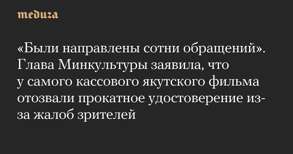 «Были направлены сотни обращений». Глава Минкультуры заявила, что у самого кассового якутского фильма отозвали прокатное удостоверение из-за жалоб зрителей