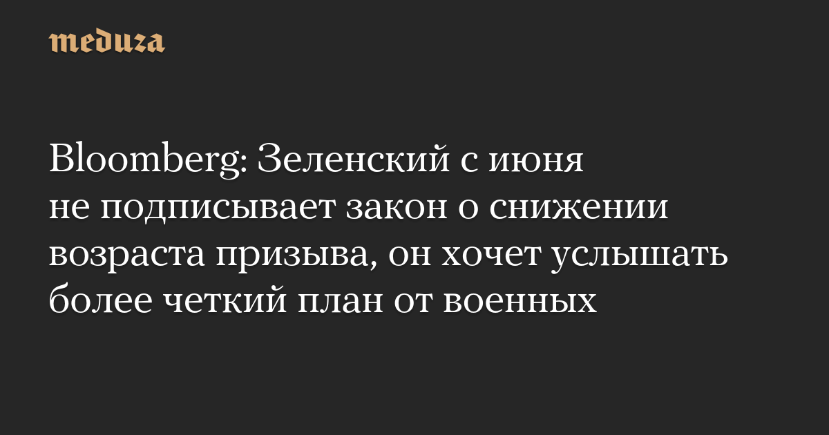 Bloomberg: Зеленский с июня не подписывает закон о снижении возраста призыва, он хочет услышать более четкий план от военных