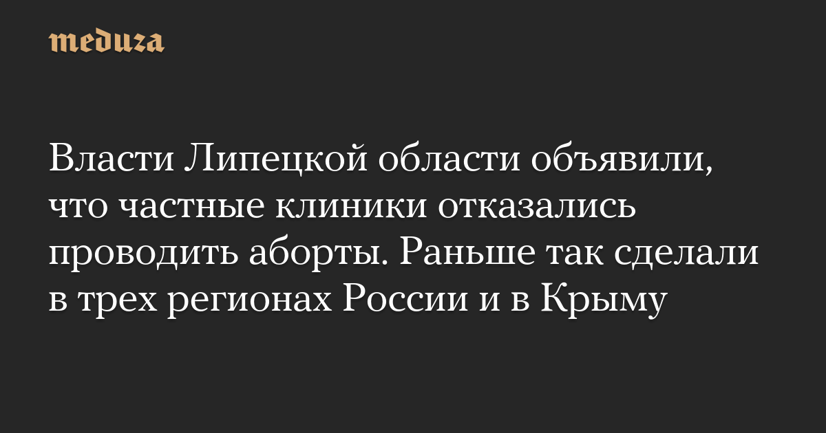 Власти Липецкой области объявили, что частные клиники отказались проводить аборты. Раньше так сделали в трех регионах России и в Крыму