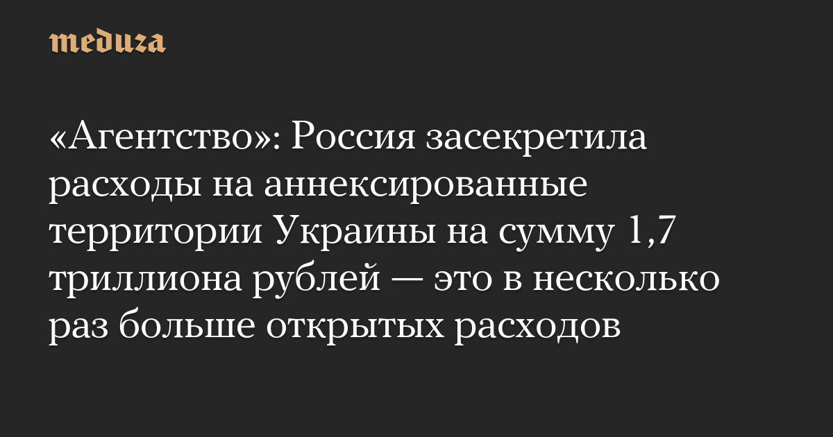 «Агентство»: Россия засекретила расходы на аннексированные территории Украины на сумму 1,7 триллиона рублей — это в несколько раз больше открытых расходов