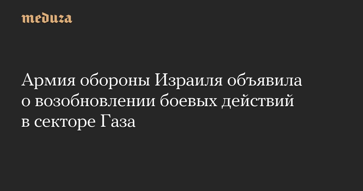 Армия обороны Израиля объявила о возобновлении боевых действий в секторе Газа