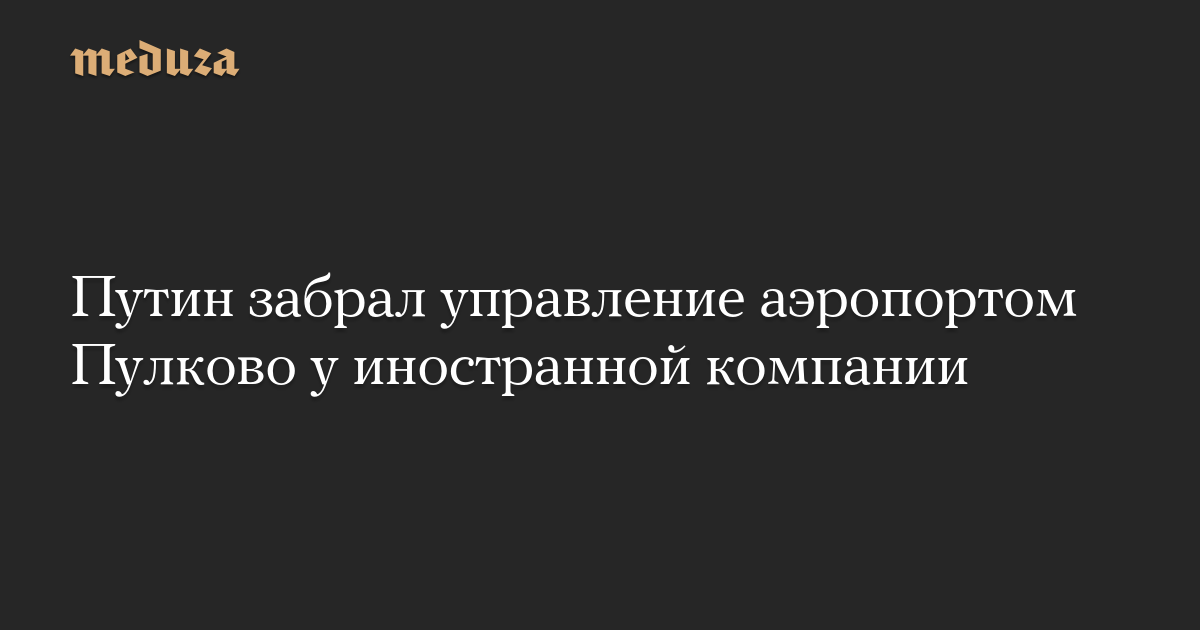 Путин забрал управление аэропортом Пулково у иностранной компании