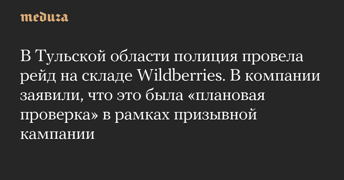 В Тульской области полиция провела рейд на складе Wildberries. В компании заявили, что это была «плановая проверка» в рамках призывной кампании