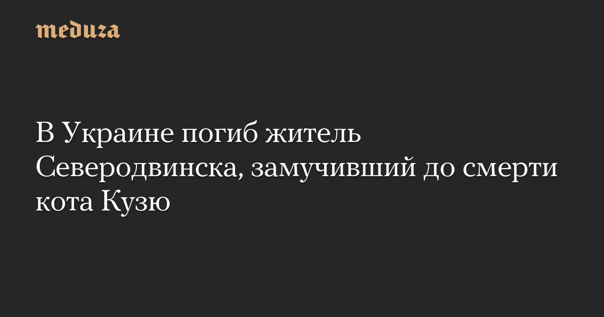Житель Северодвинска Артем Лаврентьев, осужденный по делу о жестоком обращении с животным за пытки и убийство кота Кузи в 2021 году, погиб на войне в Украине, сообщает издание «Север.Реалии».