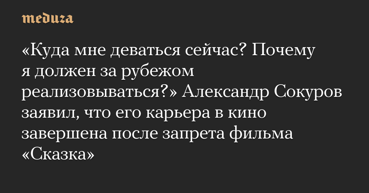 «Куда мне деваться сейчас? Почему я должен за рубежом реализовываться?» Александр Сокуров заявил, что его карьера в кино завершена после запрета фильма «Сказка»