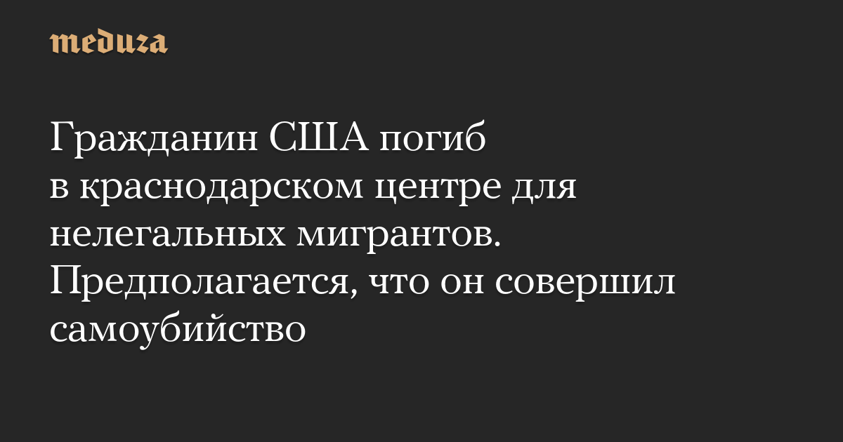 Гражданин США погиб в краснодарском центре для нелегальных мигрантов. Предполагается, что он совершил самоубийство