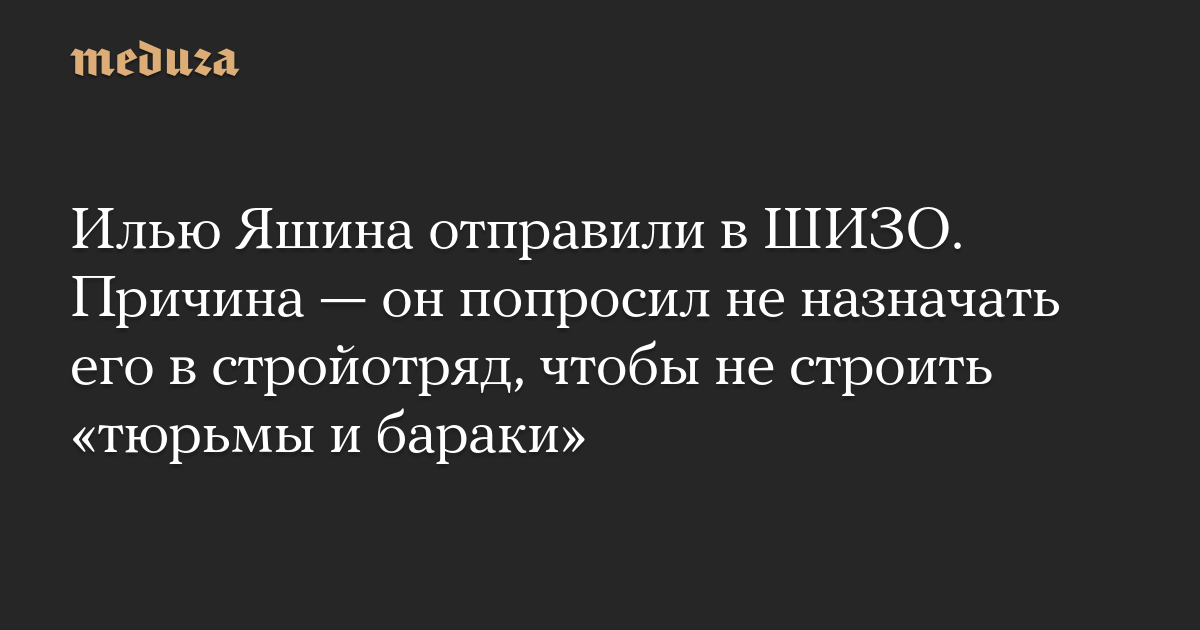 Илью Яшина отправили в ШИЗО. Причина — он попросил не назначать его в стройотряд, чтобы не строить «тюрьмы и бараки»