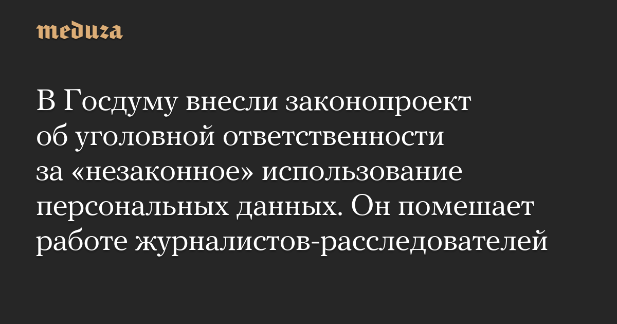 В Госдуму внесли законопроект об уголовной ответственности за «незаконное» использование персональных данных. Он помешает работе журналистов-расследователей