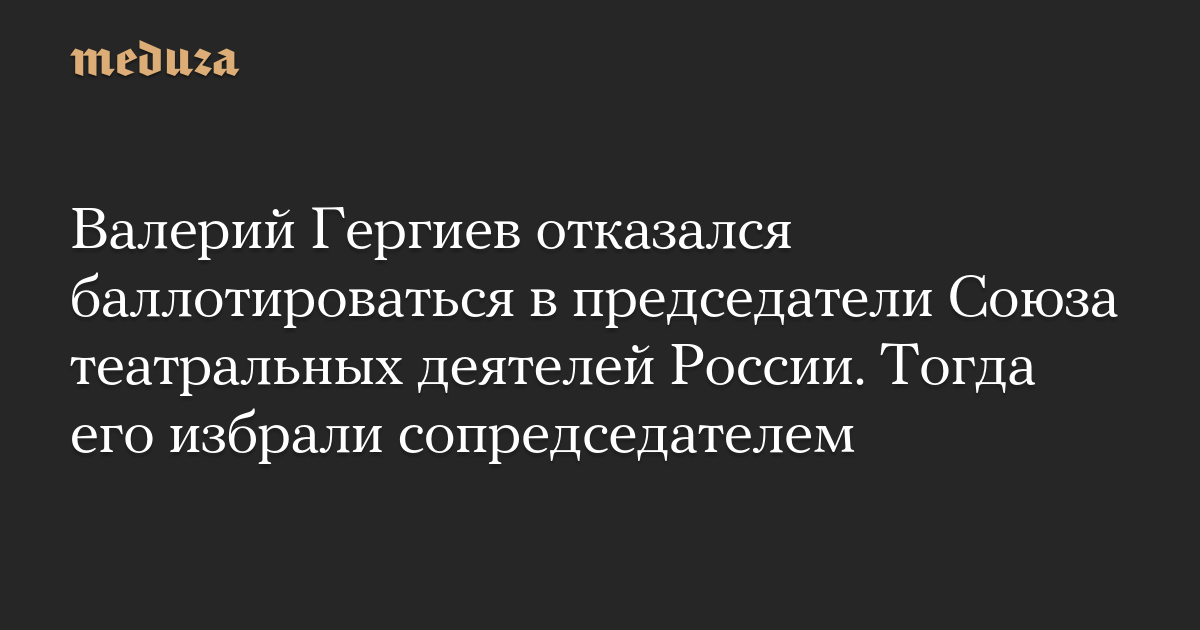 Валерий Гергиев отказался баллотироваться в председатели Союза театральных деятелей России. Тогда его избрали сопредседателем