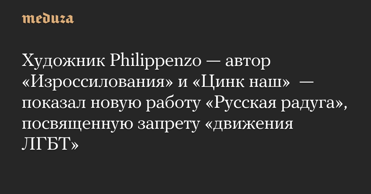 Художник Philippenzo — автор «Изроссилования» и «Цинк наш» — показал новую работу «Русская радуга», посвященную запрету «движения ЛГБТ»