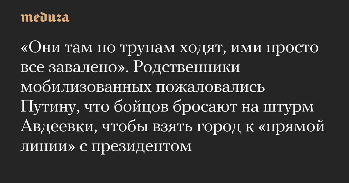 «Они там по трупам ходят, ими просто все завалено». Родственники мобилизованных пожаловались Путину, что бойцов бросают на штурм Авдеевки, чтобы взять город к «прямой линии» с президентом