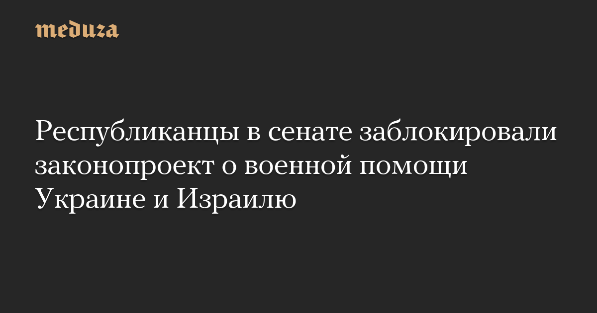 Рассмотрение законопроекта, предусматривающего выделение бюджетных средств на военную помощь Украине и Израилю, в сенате США было заблокировано депутатами от Республиканской партии, сообщает CNN.
