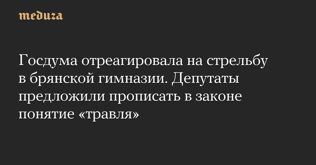 Госдума отреагировала на стрельбу в брянской гимназии. Депутаты предложили прописать в законе понятие «травля»
