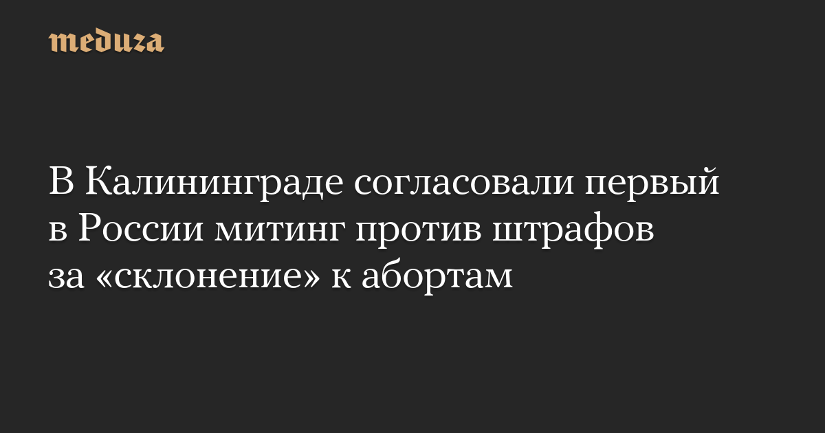 Администрация Калининграда разрешила провести митинг против введения штрафов за «склонение» к абортам. Об этом сообщила SOTAvision одна из организаторов акции Анастасия.
