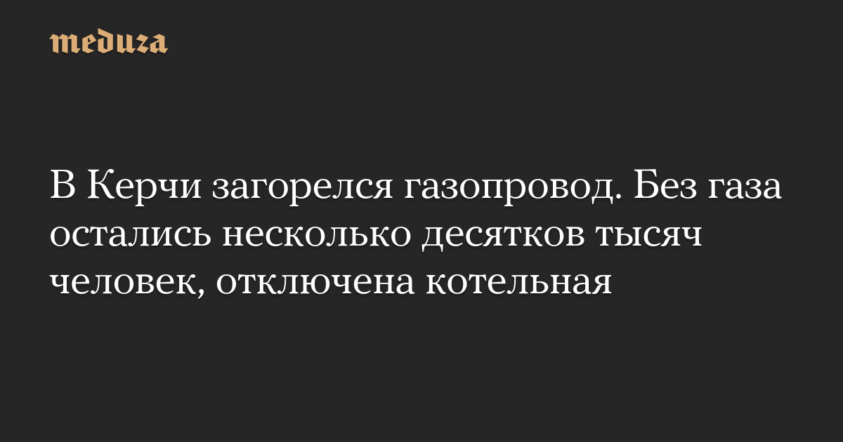 В Керчи в ночь на 8 декабря произошло пожар на газопроводе среднего давления. Глава администрации Керчи, расположенной в аннексированном Крыму, Святослав Брусаков сообщил, что из-за происшествия без газа остались 25-30 тысяч абонентов, остановлена котельная.