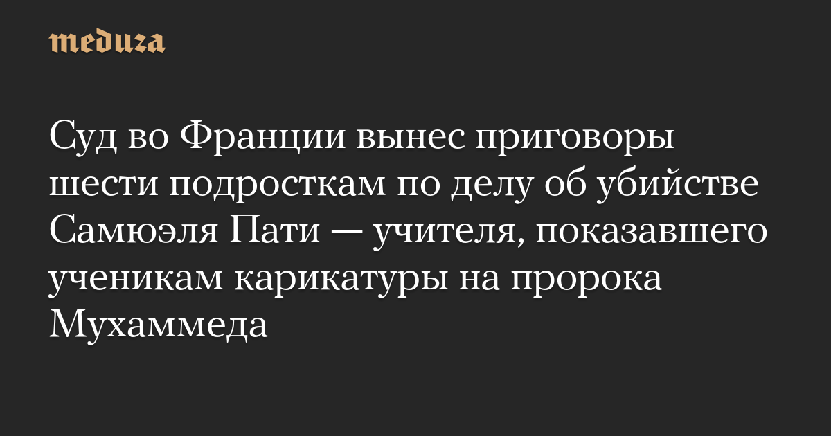 Суд во Франции вынес приговоры шести подросткам по делу об убийстве Самюэля Пати — учителя, показавшего ученикам карикатуры на пророка Мухаммеда