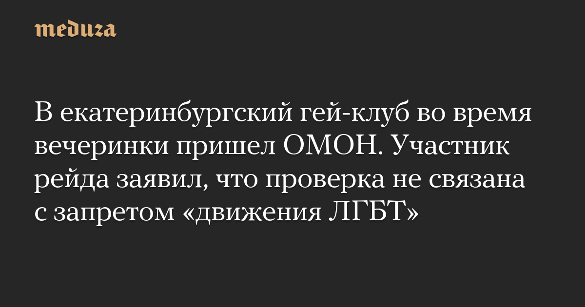 В екатеринбургский гей-клуб во время вечеринки пришел ОМОН. Участник рейда заявил, что проверка не связана с запретом «движения ЛГБТ»