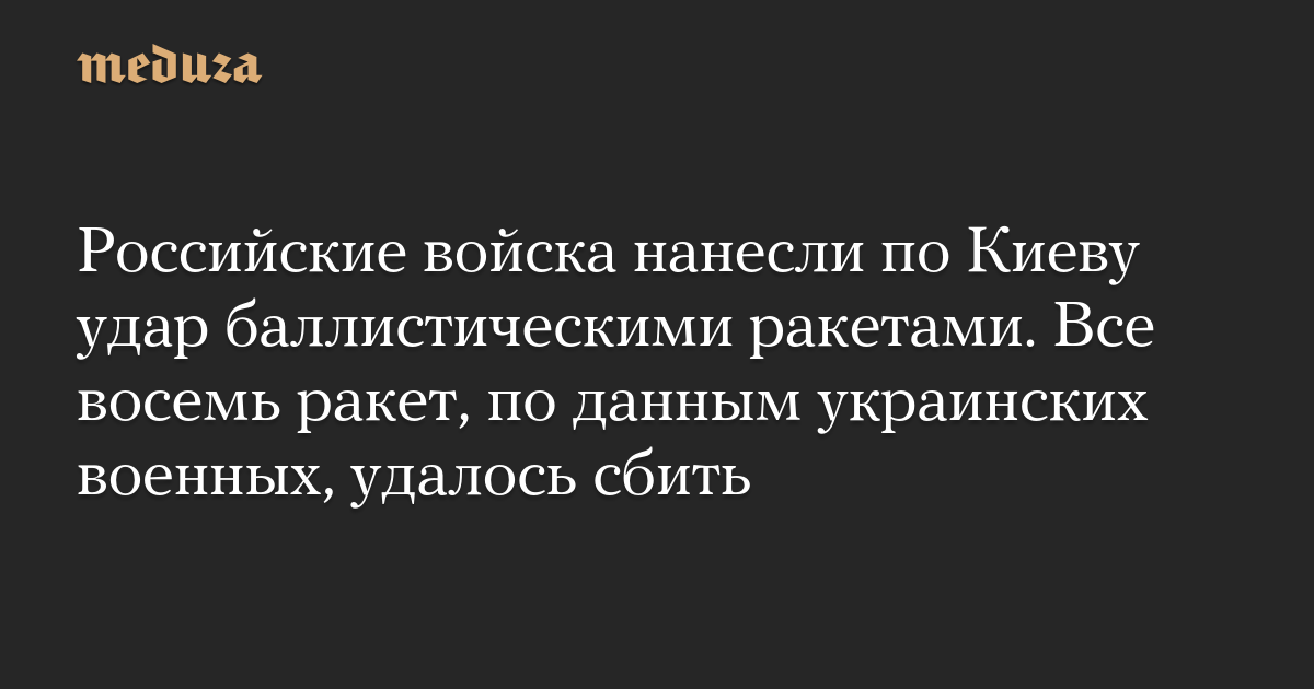Российские войска нанесли по Киеву удар баллистическими ракетами. Все восемь ракет, по данным украинских военных, удалось сбить