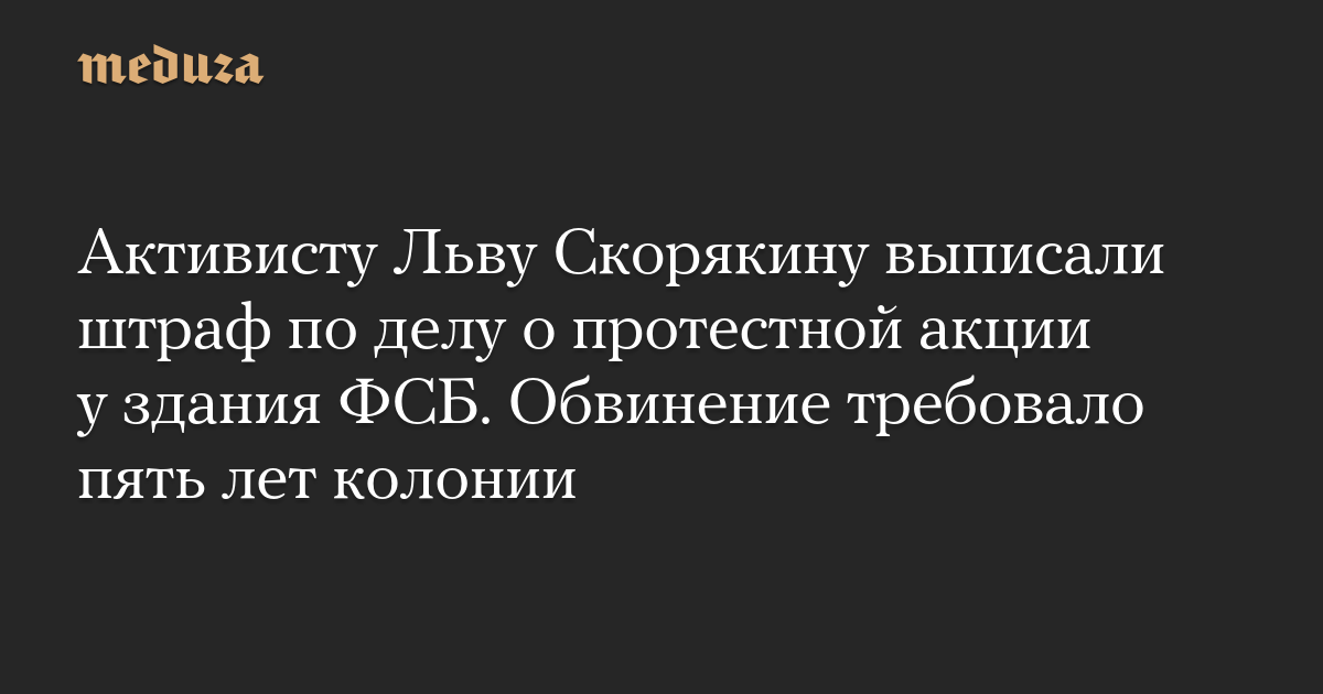 Активисту Льву Скорякину выписали штраф по делу о протестной акции у здания ФСБ. Обвинение требовало пять лет колонии