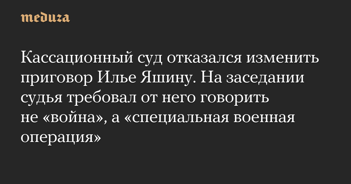 Кассационный суд отказался изменить приговор Илье Яшину. На заседании судья требовал от него говорить не «война», а «специальная военная операция»