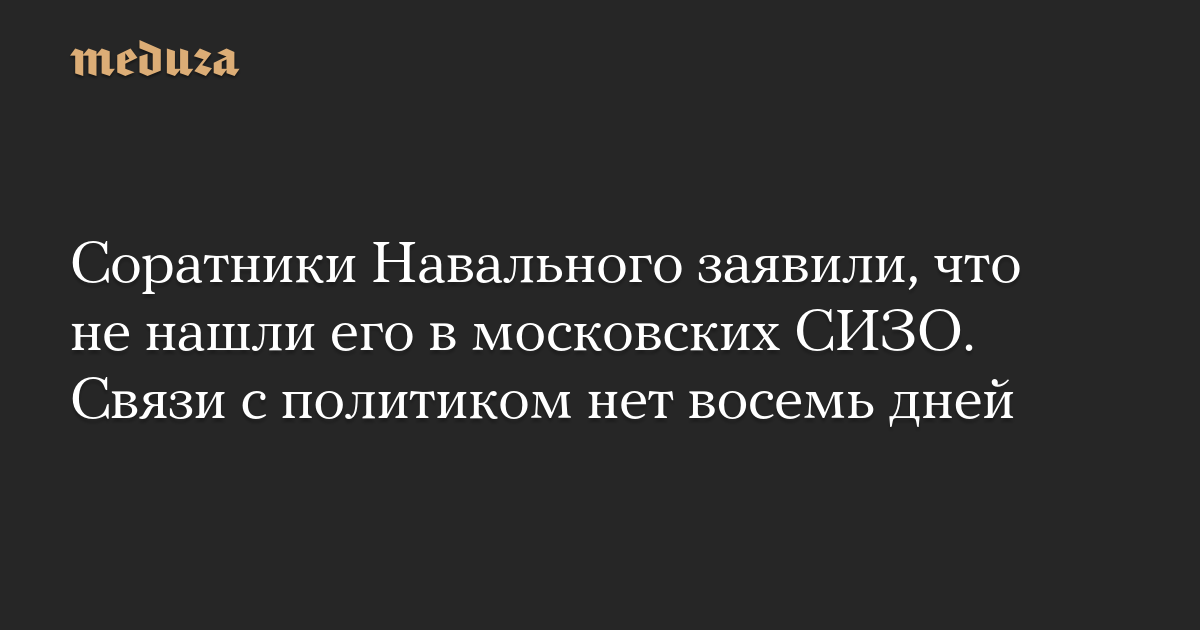Соратники Навального заявили, что не нашли его в московских СИЗО. Связи с политиком нет восемь дней
