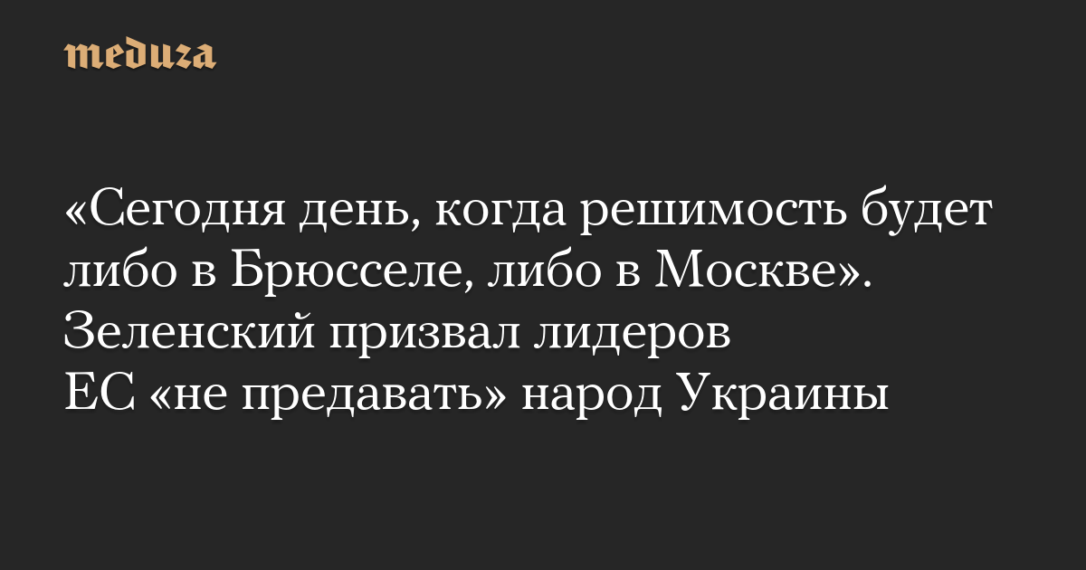 «Сегодня день, когда решимость будет либо в Брюсселе, либо в Москве». Зеленский призвал лидеров ЕС «не предавать» народ Украины
