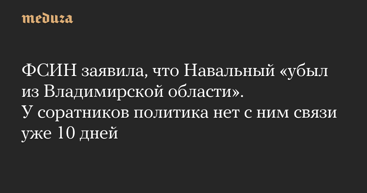 ФСИН заявила, что Навальный «убыл из Владимирской области». У соратников политика нет с ним связи уже 10 дней