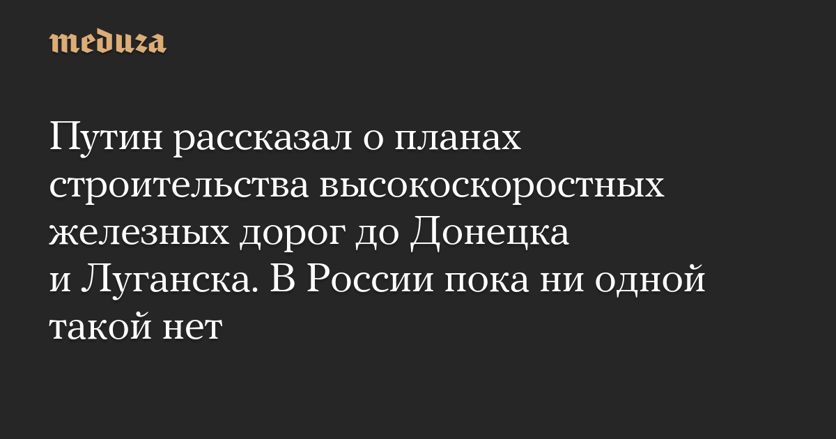 Президент РФ Владимир Путин заявил, что «в перспективе» планируется построить высокоскоростные железные дороги до аннексированных Донецка и Луганска.