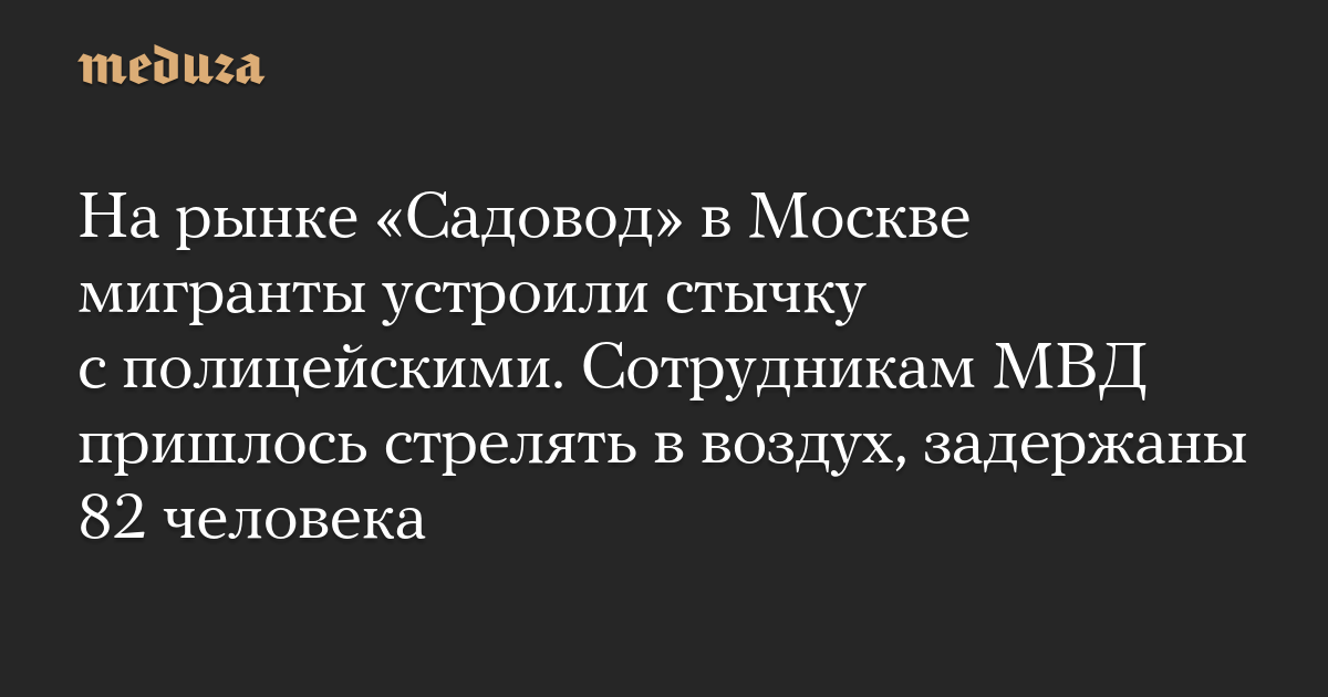 На рынке «Садовод» в Москве мигранты устроили стычку с полицейскими. Сотрудникам МВД пришлось стрелять в воздух, задержаны 82 человека