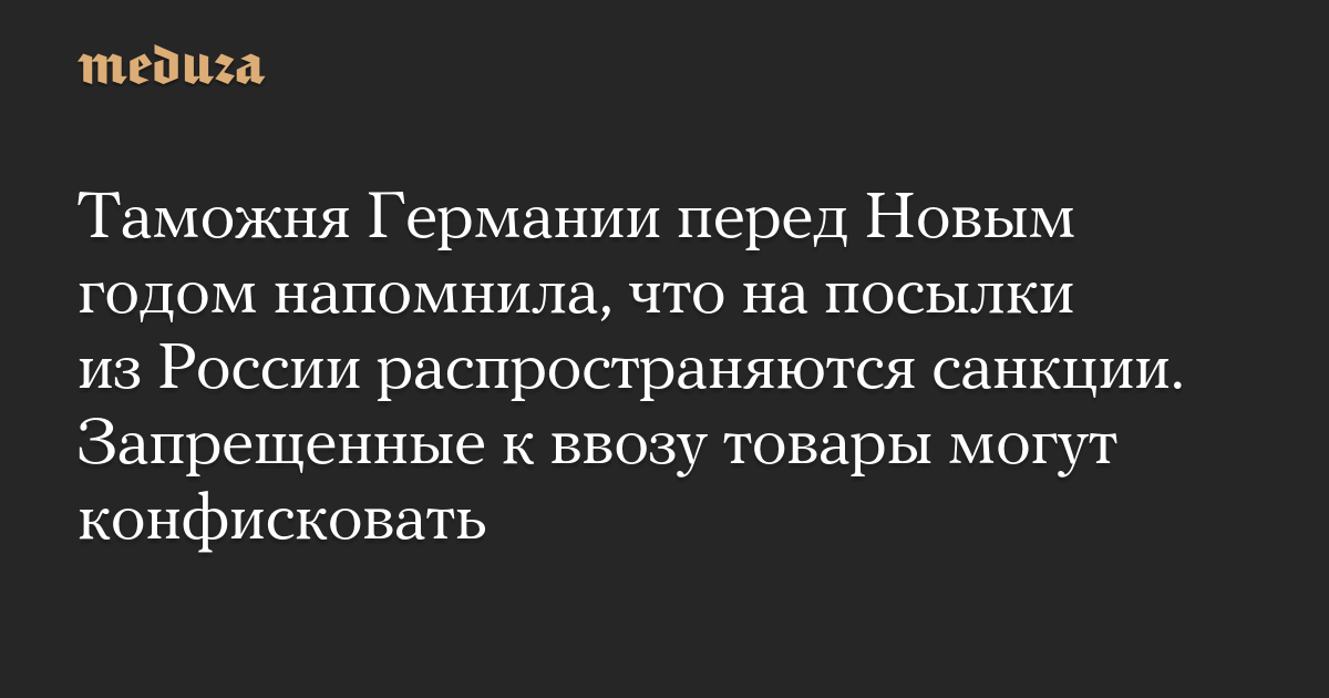 Таможня Германии перед Новым годом напомнила, что на посылки из России распространяются санкции. Запрещенные к ввозу товары могут конфисковать