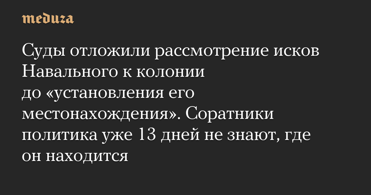 Суды отложили рассмотрение исков Навального к колонии до «установления его местонахождения». Соратники политика уже 13 дней не знают, где он находится