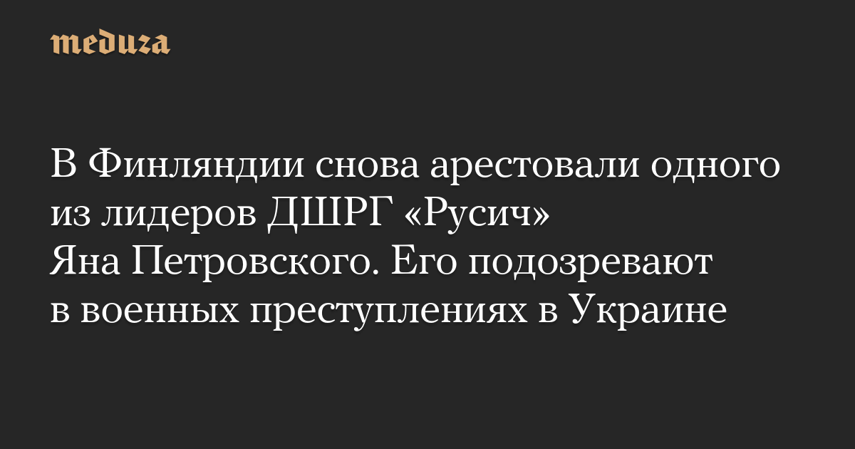 В Финляндии снова арестовали одного из лидеров ДШРГ «Русич» Яна Петровского. Его подозревают в военных преступлениях в Украине