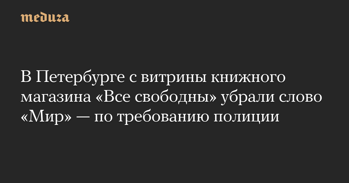 В Петербурге с витрины книжного магазина «Все свободны» убрали слово «Мир» — по требованию полиции
