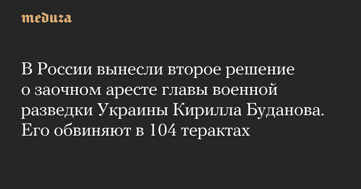 В России вынесли второе решение о заочном аресте главы военной разведки Украины Кирилла Буданова. Его обвиняют в 104 терактах