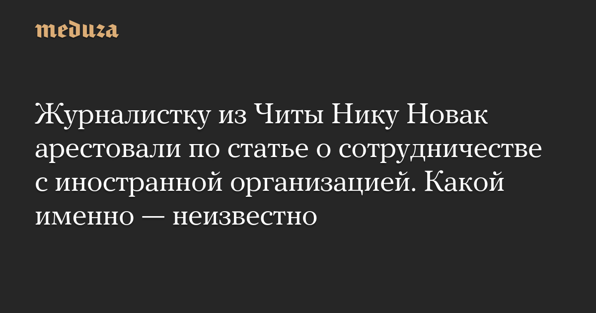 Журналистку из Читы Нику Новак арестовали по статье о сотрудничестве с иностранной организацией. Какой именно — неизвестно