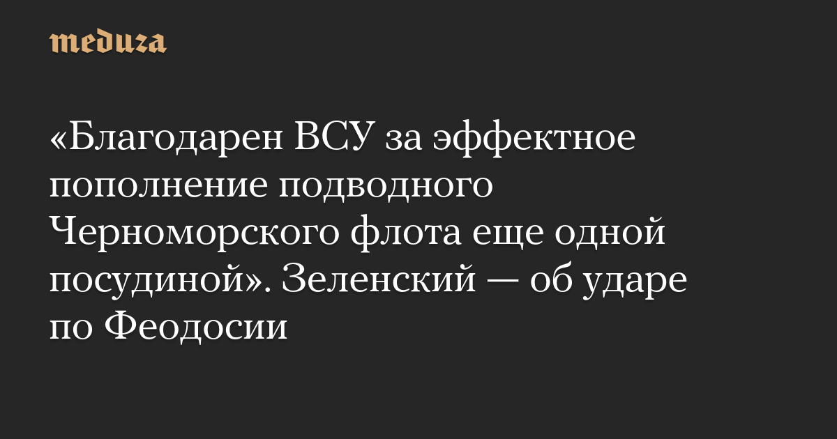 «Благодарен ВСУ за эффектное пополнение подводного Черноморского флота еще одной посудиной». Зеленский — об ударе по Феодосии