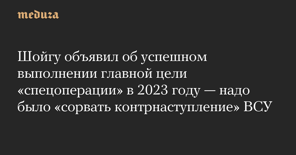 Шойгу объявил об успешном выполнении главной цели «спецоперации» в 2023 году — надо было «сорвать контрнаступление» ВСУ