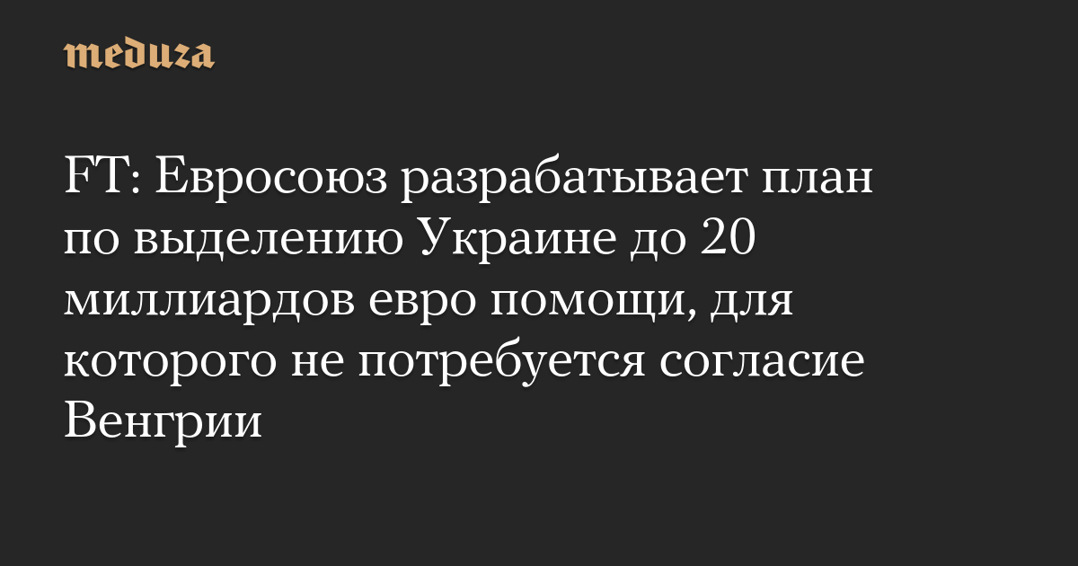 FT: Евросоюз разрабатывает план по выделению Украине до 20 миллиардов евро помощи, для которого не потребуется согласие Венгрии