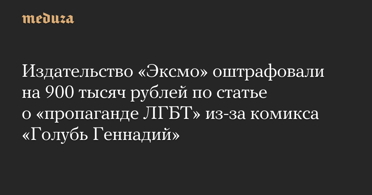 Издательство «Эксмо» оштрафовали на 900 тысяч рублей по статье о «пропаганде ЛГБТ» из-за комикса «Голубь Геннадий»