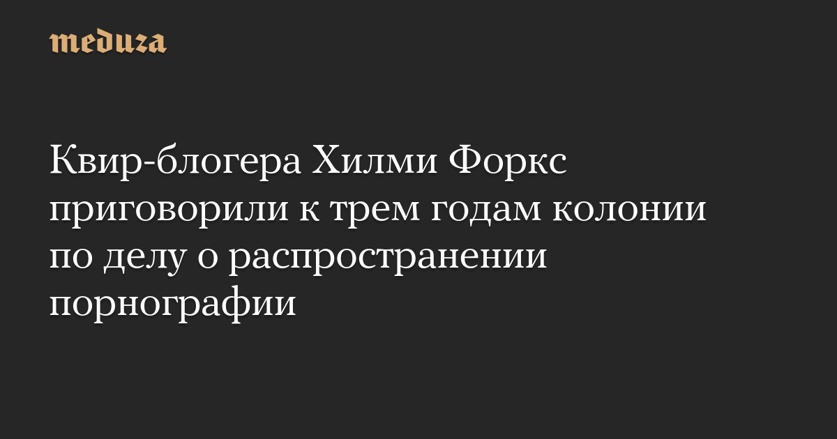 Квир-блогера Хилми Форкс приговорили к трем годам колонии по делу о распространении порнографии