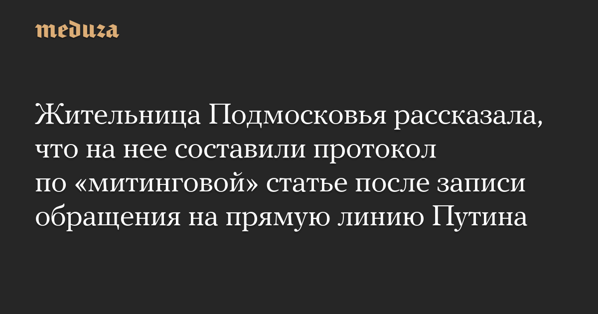 Жительница Подмосковья рассказала, что на нее составили протокол по «митинговой» статье после записи обращения на прямую линию Путина