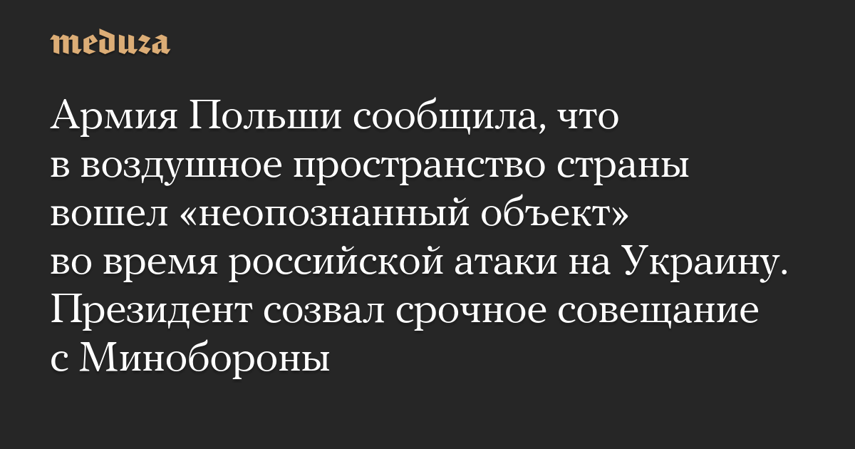 Армия Польши сообщила, что в воздушное пространство страны вошел «неопознанный объект» во время российской атаки на Украину. Президент созвал срочное совещание с Минобороны