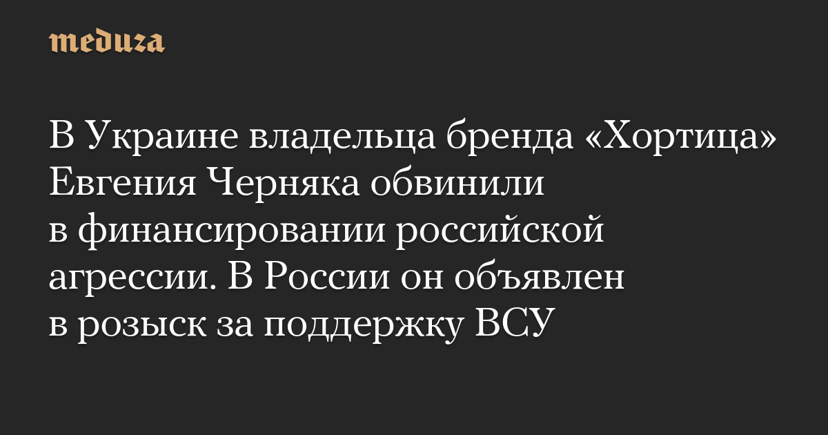 В Украине владельца бренда «Хортица» Евгения Черняка обвинили в финансировании российской агрессии. В России он объявлен в розыск за поддержку ВСУ