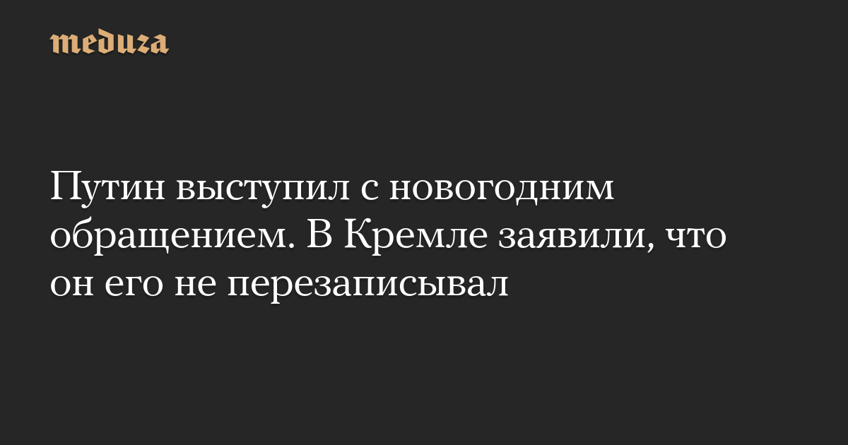 Путин выступил с новогодним обращением. В Кремле заявили, что он его не перезаписывал